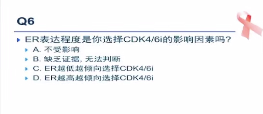 随后,余科达教授提出了最后一个问题:ER表达程度是您选择CDK4/6抑制剂的影响因素吗?