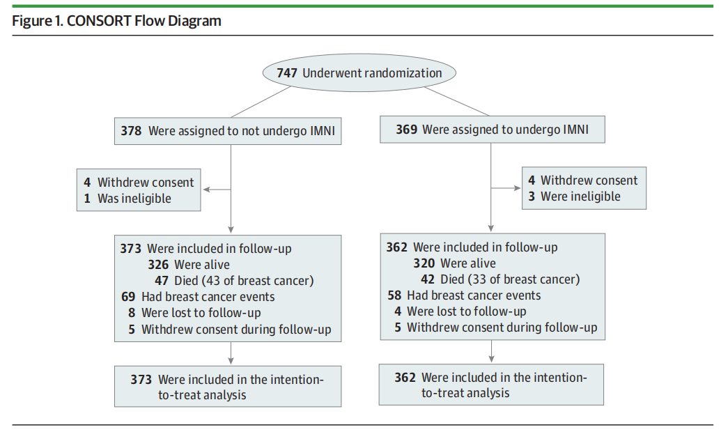 JAMA Oncol丨选择性内乳淋巴结放疗对淋巴结阳性乳腺癌无病生存的影响