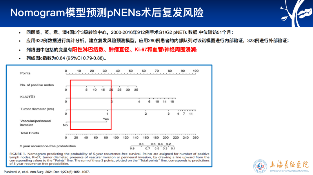 30.Pulvirenti A,Javed AA,Landoni L,et al.Multi-institutional Development and External Validation of a Nomogram to Predict Recurrence After Curative Resection of Pancreatic Neuroendocrine Tumors.Ann Surg.2021;274(6):1051-1057.