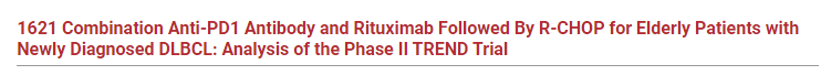 编者按:2022年12月10~13日,第64届美国血液学年会(ASH)在美国路易斯安那州新奥尔良隆重召开,作为全球血液领域中规模最大和内容最为全面的血液学顶级学术盛会,本届ASH一如既往地吸引了众多专家及学者的关注。在本次ASH大会上,中山大学肿瘤防治中心黄慧强教授牵头的临床试验(TREND)入选了本次ASH大会的壁报展示(abstract1621),国内外首次公布了特瑞普利单抗联合利妥昔序贯标准R-CHOP方案治疗一线老年DLBCL患者的疗效和安全性,《肿瘤瞭望》特邀黄慧强教授点评解读该研究,现整理如下。