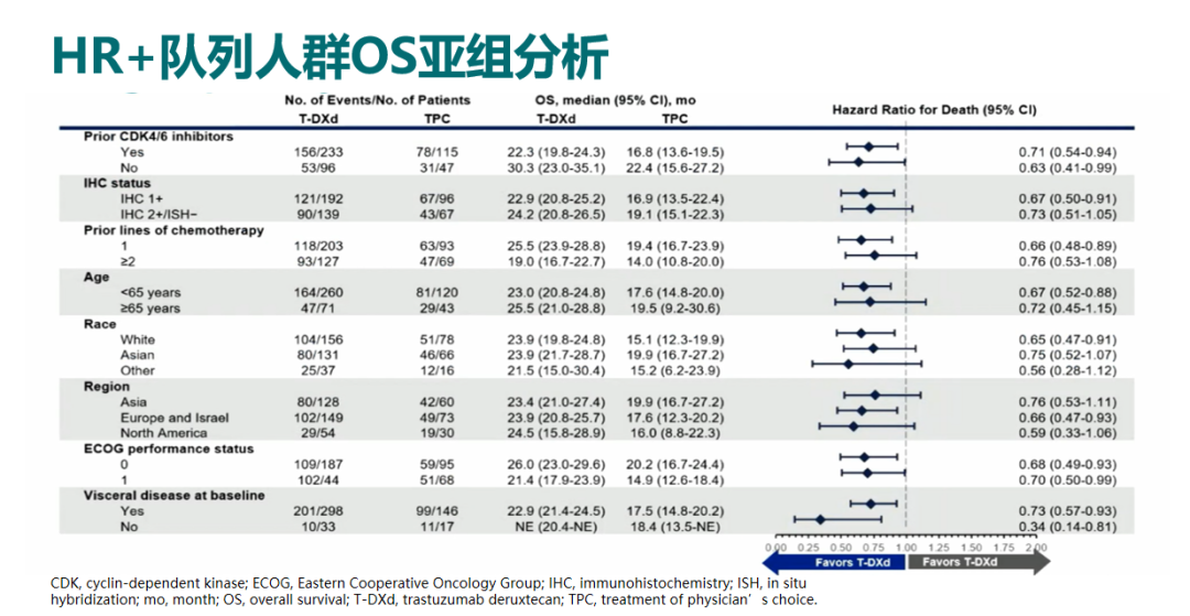 HR+队列和所有患者的OS亚组分析显示,各亚组的OS获益保持一致。