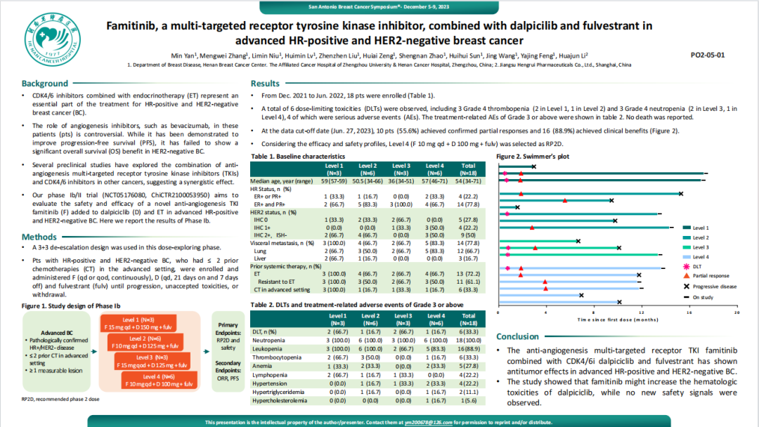 SABCS中国之声丨闫敏教授团队开展的法米替尼联合达尔西利和氟维司群治疗HR+/HER2-晚期乳腺癌I期研究结果公布