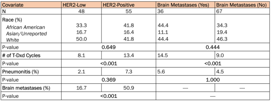△Winship癌症研究所RWS中多样性人群的T-DXd疗程、肺炎和脑转移情况