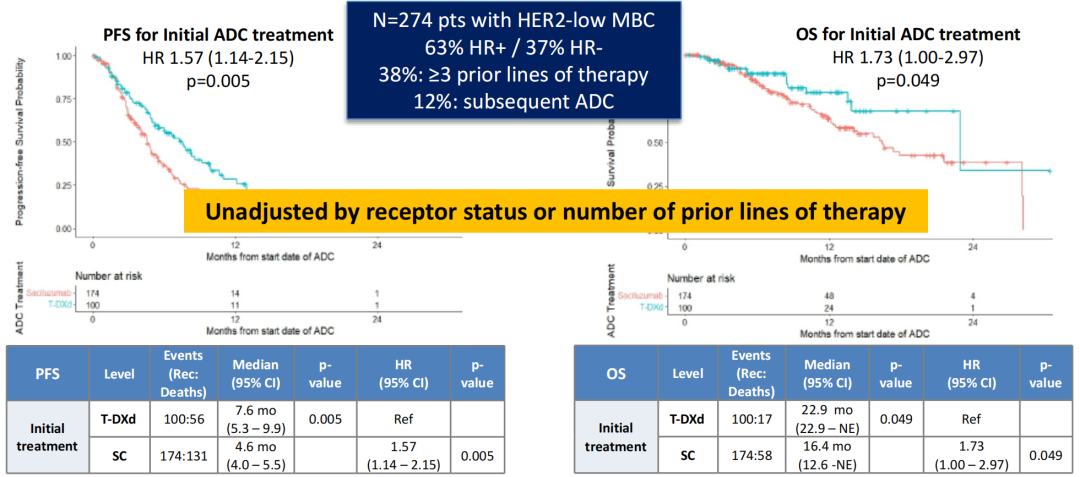 3.Multicenter retrospective cohort study of the sequential use of the antibody-drug conjugates(ADCs)trastuzumab deruxtecan(T-DXd)and sacituzumab govitecan(SG)in patients with HER2-low metastatic breast cancer(MBC).PS-08-04;SABCS 2023