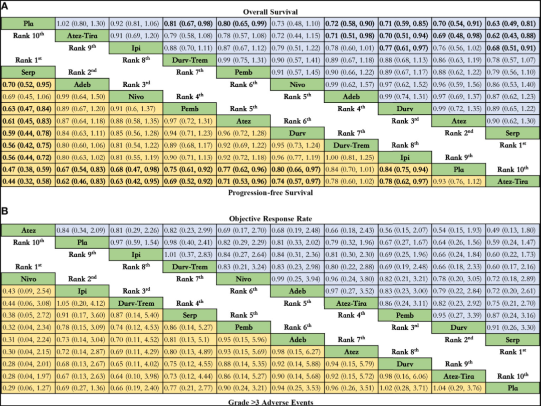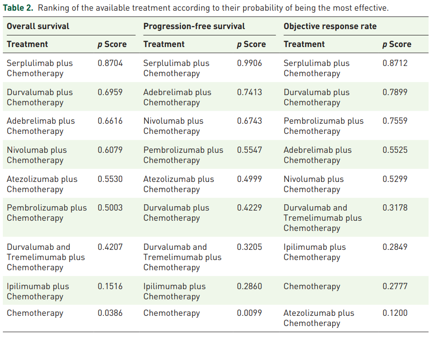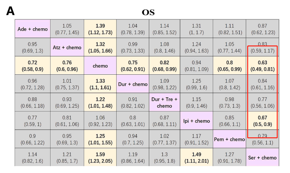 网状Meta分析可以助力研究者对不同干预措施进行量化比较,并按照某一结果指标效果好坏进行排序,进而为患者优化治疗方案。在ES-SCLC免疫治疗药物选择方面,2023年公布的4项Meta分析结果将进一步明确临床选择。